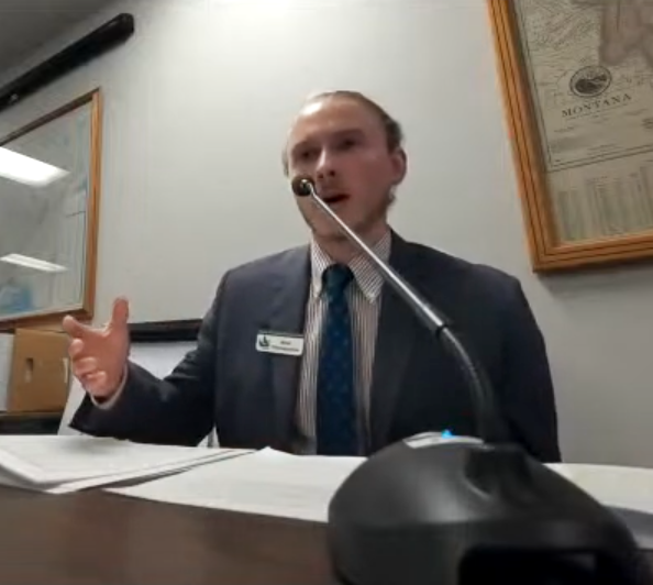 MEIC’s Nick Fitzmaurice testified as an expert at the rate case hearing, despite NorthWestern Energy’s efforts to prevent him from testifying. Screenshot from PSC livestream.