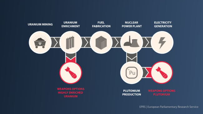 This image via European Parliament Research Services illustrates the connection between nuclear energy and nuclear weapons.