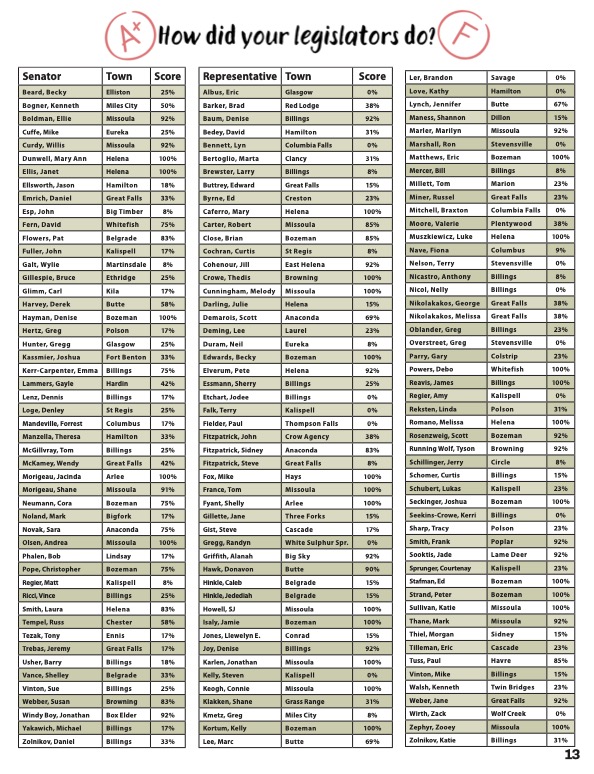 MEIC’s Legislative Voting Record has provided objective, factual information about the most important environmental legislation for Montana legislative sessions since 1974. This year’s legislative scorecard includes critical votes on fossil fuels, land use planning, water quality, environmental policy, pollution prevention, energy, judiciary, and government transparency. For more information about each legislator’s votes and the 17 bills we scored, visit our website: www.meic.org/bill-tracker/#/legislators/statescorecard